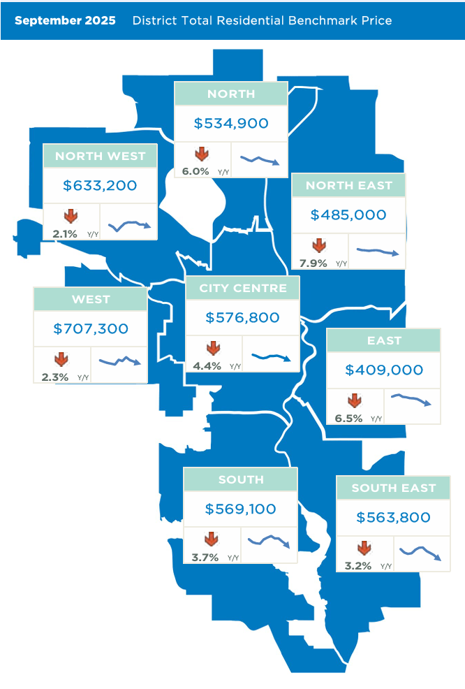The rise in supply caused the months of supply to push up to five months, the first time it has done that since 2021. As elevated levels of supply have persisted since June, prices have been trending down. As of September, the benchmark price was $322,900, down over one per cent compared to last month and over six per cent compared to last year. The year-to-date price adjustment has been just over one per cent. Condo prices have slid across all districts compared to last September. The largest decline occurred in the North East district at over ten per cent, while the smallest decline occurred in the City Centre at five per cent.